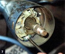 7. It quickly became obvious why our SS owner had become a hand-signal-only dude. The slot for the turn-signal lever in the original turn-signal switch was sown beyond use and the contacts had been soldered back into place at least once.