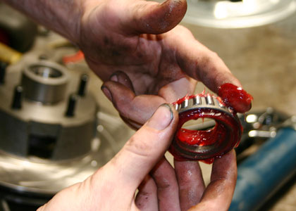 If you purchased a fully assembled kit, the rest is pretty straightforward. Attach the knuckle assembly to the control arms and tie rods, and re-fasten the lines and hoses. Although our kit came unassembled, it was pretty straightforward in its own right. After the fresh paint on the knuckles had dried, we installed the supplied spindle brackets and the new backing plates. Thoroughly grease and install the new inner wheel bearings into the hub/rotor assembly. It is highly important to keep the bearings clean and free of all dirt and debris. The bearings can be lightly tapped into place with a clean, rubber mallet or large socket. Be careful not to damage the lip or the seal of the bearing while doing so.