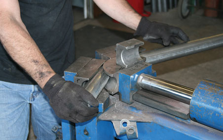 The fabricated tubing is test fit for length, and then properly angled using a hydraulic tubing bender. Any professional muffler shop has one of these benders - so if you’re contemplating installing a new exhaust system by yourself - when you get to this point, have the tubing bent by a pro. Smooth, uninterrupted exhaust flow is critical to overall performance.