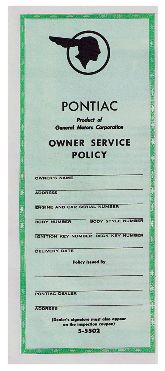 Service Policy, New Vehicle #S-5502, 1959 Bonn/Cat