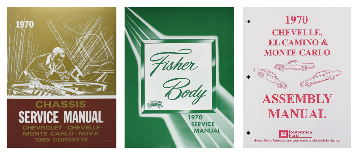 This is a must-have trio of books! It just doesn't get any better than this. Most everything you'll ever have a question about can be found in these three comprehensive volumes that are offered here. Save valuable time by having the information you need at your fingertips when you need it! Whether you are building, restoring or assembling your vehicle, you'll be thrilled at the detailed information here. The chassis service manual—a GM staple at the dealerships back when—contains maintenance, adjustments and minor service operations information. The factory assembly line manual is just what it says: it's the original guide by which the GM assembly line workers used to create the new vehicles. The Fisher body manual, (also used at the GM plant) provides detailed removal, installation and maintenance information on all body components, glass, headliners, convertible tops and more.