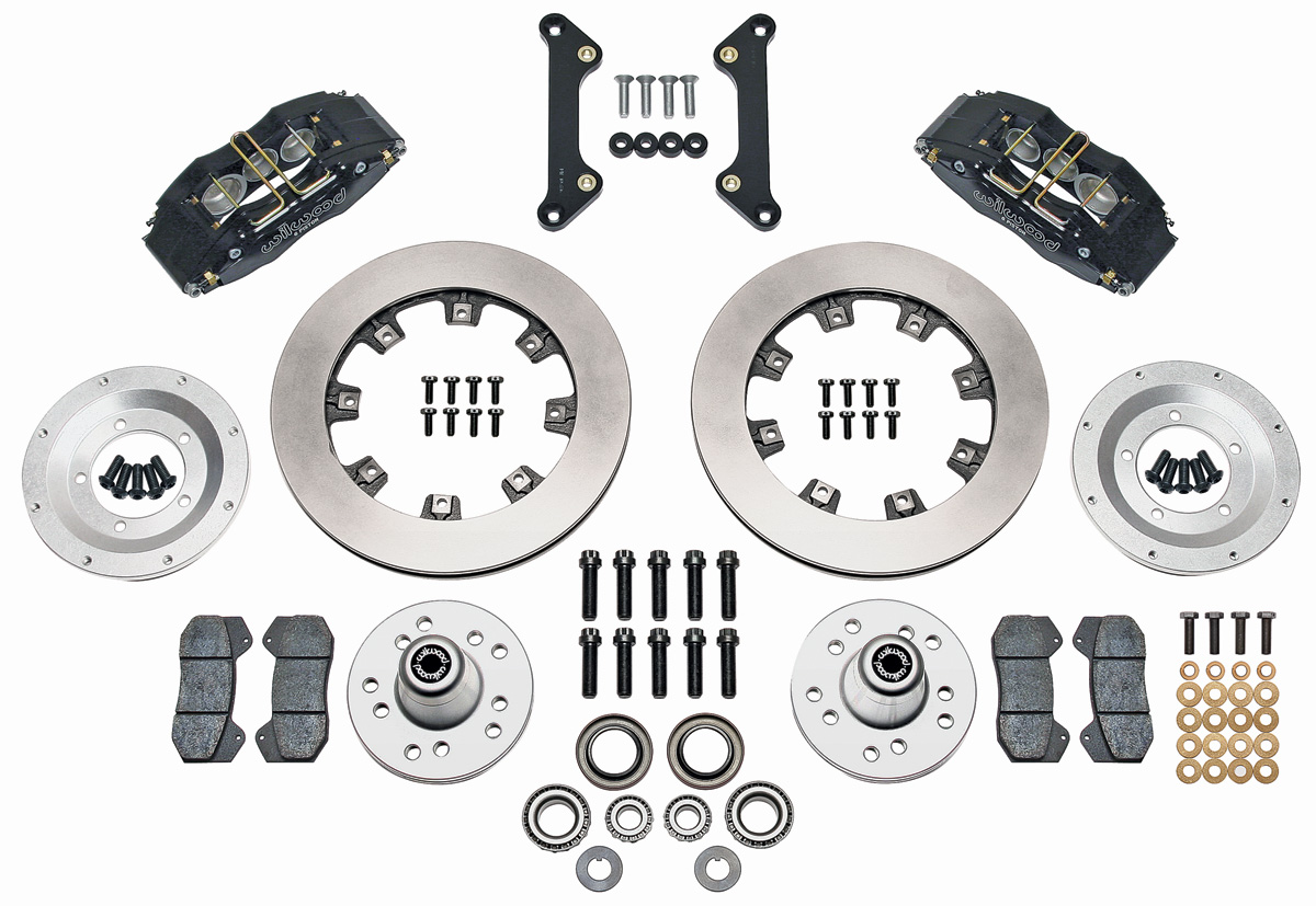 These premium big brake kits are ideal for bringing your car to a quick stop whether you’re on the street or the strip. Each kit is built around forged and machined aluminum hubs for added strength and weight savings. The large 12.19” rotors and enormous DynaPro 6-piston calipers designed to work in unison to stop your car. Kits are available in several rotor and caliper combinations to suit your visual and performance needs. Flex lines are not included, but sold separately.