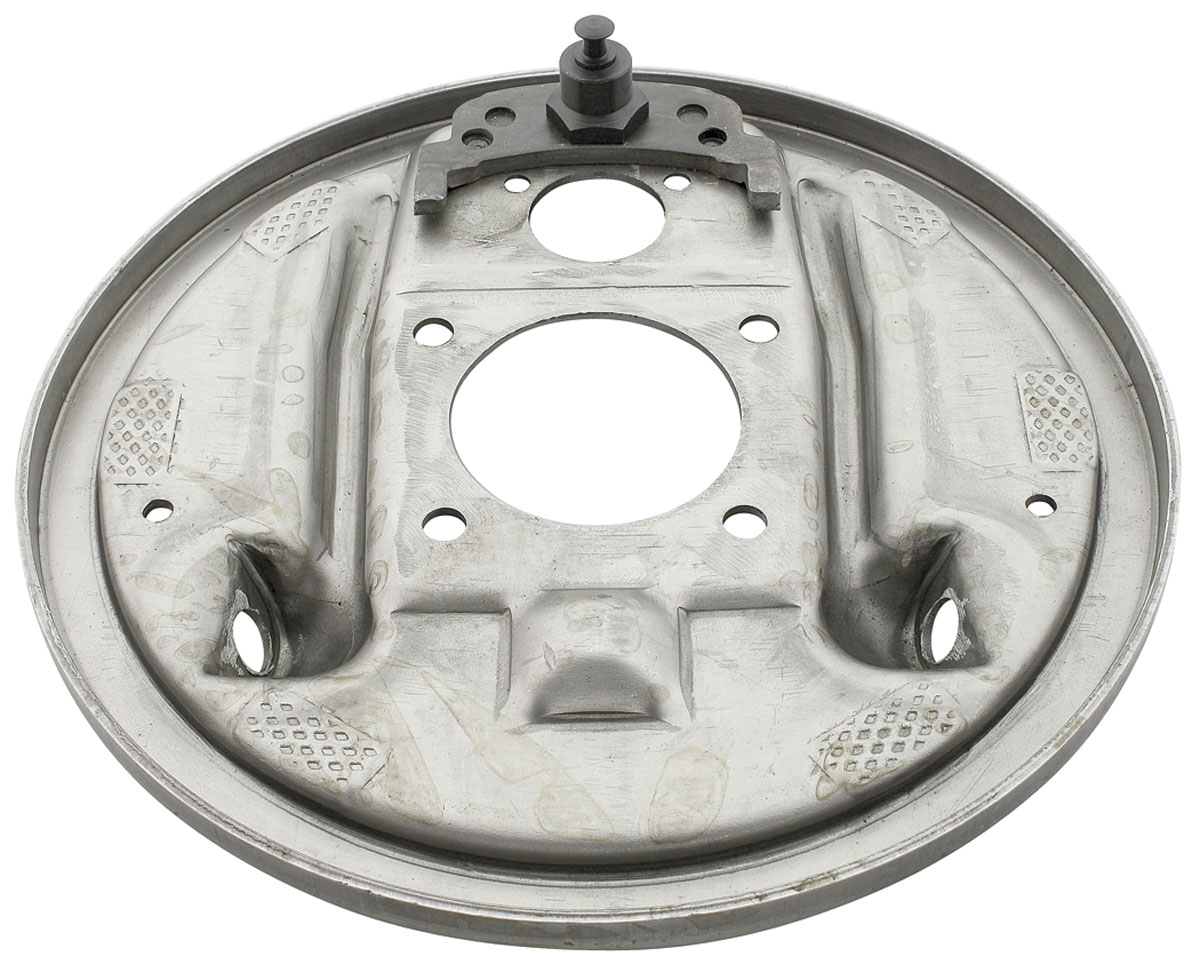 For the first time since around the mid-80s you can now get a brand-new rear drum brake backing plate. This is a precisely reproduced backing plate using a professional stamping press. This is an exact duplicate of the originals. Fits 9-1/2" drum cars only.