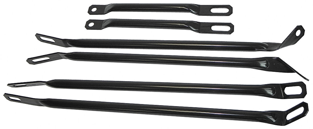 These reproduction support bars are a necessity when mounting the bumpers to your Cutlass. Sold in sets, each steel bar is precisely-formed for a factory fit and features the correct flat ends with properly located holes for hassle-free mounting. A gloss-black powder coated finish is applied to add to the original appearance.