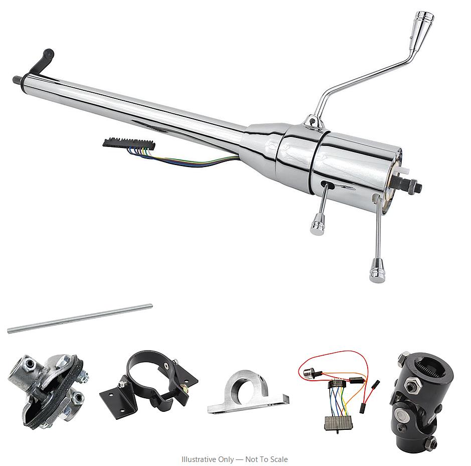 These tilt steering column kits bring a touch of modern comfort and convenience to your vehicle by adding the tilt feature. Columns are available in a paintable natural or chrome-plated finish and feature a 2" outer tube diameter and overall length that matches original equipment. Each column utilizes all new internal components such as 4-way flasher, turn signal switch, and wiring. Floor shift columns also include a neutral safety switch. In addition to the column, these kits include the other necessary components to get the column installed and working properly. Each column is designed to accept original or aftermarket steering wheels from 1969-up.