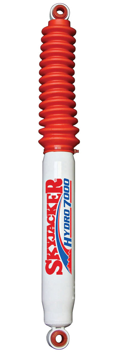 Skyjacker® Hydro Shocks offer you a high quality shock absorber with velocity sensitive valving. Features true hydraulic action, leak proof seal, bonded iron piston and chromed piston rod, red boot and red polyurethane bushings included. All shock absorbers backed by Skyjacker's Limited Lifetime Warranty.