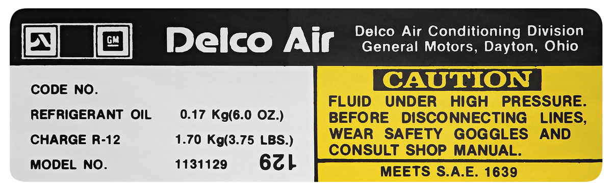 Decal, AC Compressor, 1978-80 GM G-Body, Delco, # 1131129