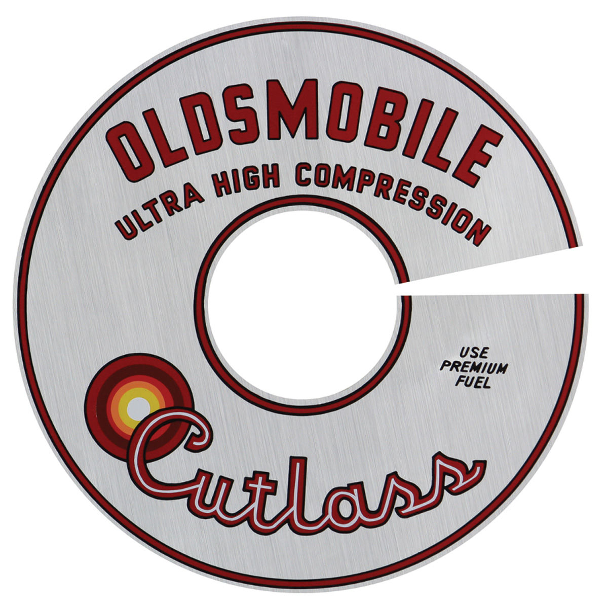 Decal, Air Cleaner, 1965-66 Cutlass, 330-4V, 11" Cutlass Ultra Hi-Comp, Silver