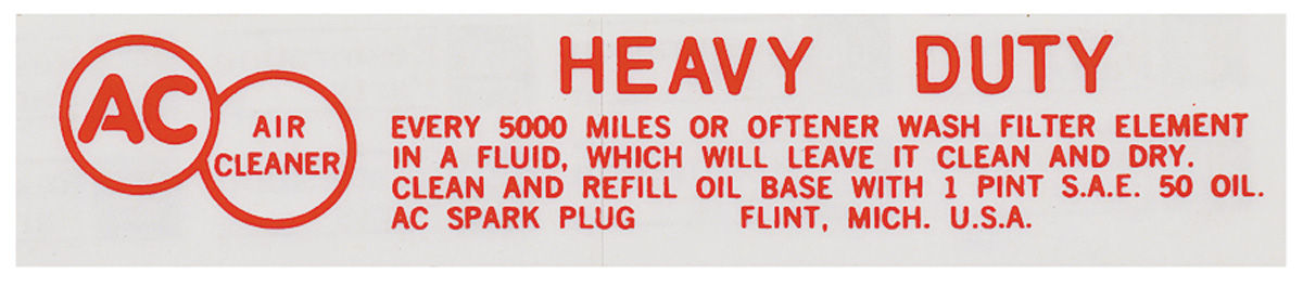 Decal, Air Cleaner Service, 1956-57 Cadillac, Oil Bath, Red