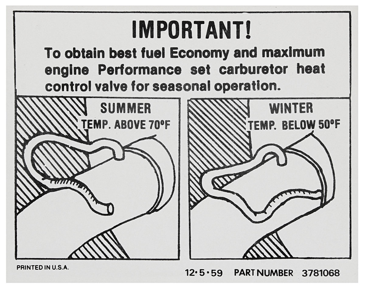 Decal, Carb Heat Valve Instruction, 1960 Corvair