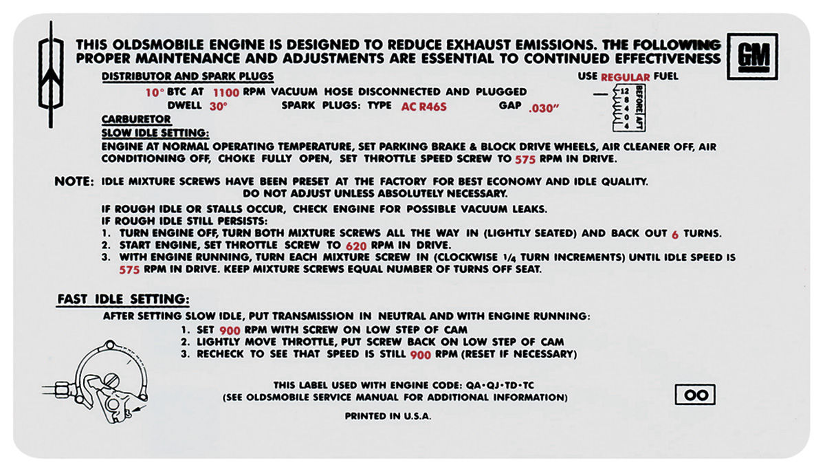 Decal, Emissions, 1970 Cutlass, 350-2V, AT, OO