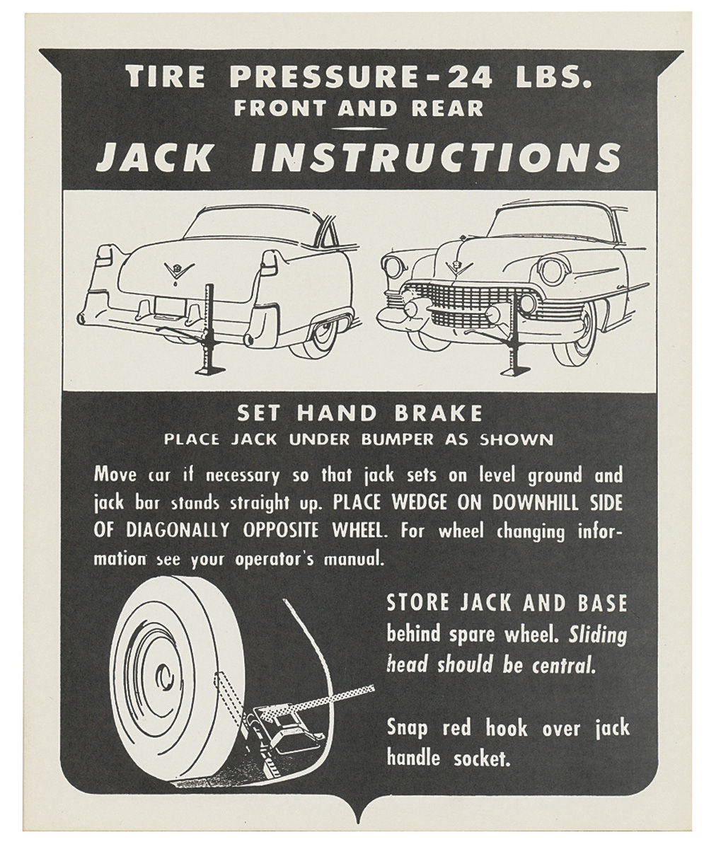 Decal, Jack Instruction Tag, 1953 Cadillac