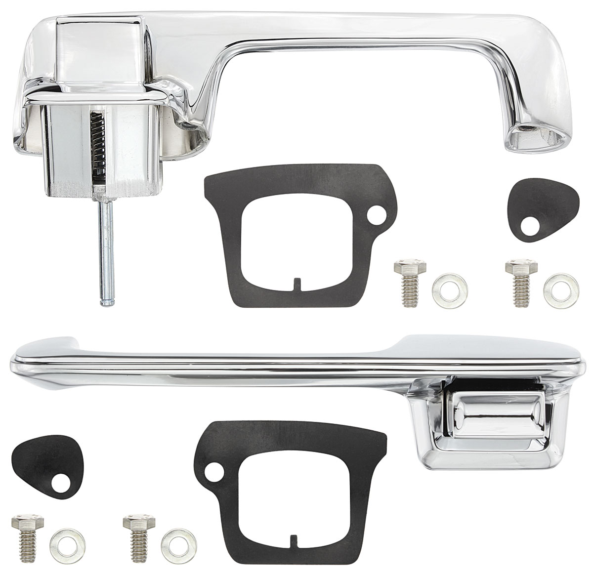 Finally, a factory correct reproduction! RESTOPARTS® has manufactured this kit the right way - a guaranteed exact reproduction. This kit has been tooled from factory original Cadillac handles. Unlike others on the market, our handle and button kit is guaranteed identical in appearance, fit and finish. Includes buttons, springs, and all necessary hardware for installation. Important: Kits offered elsewhere look similar to the original, are slightly (incorrectly) angled once installed, and not original for Cadillac, but is original for a Buick make and model. That is why we set out to manufacture this kit the right way. We didn’t compromise, and neither should you! Insist on RESTOPARTS manufactured hard parts for true, factory style reproductions.