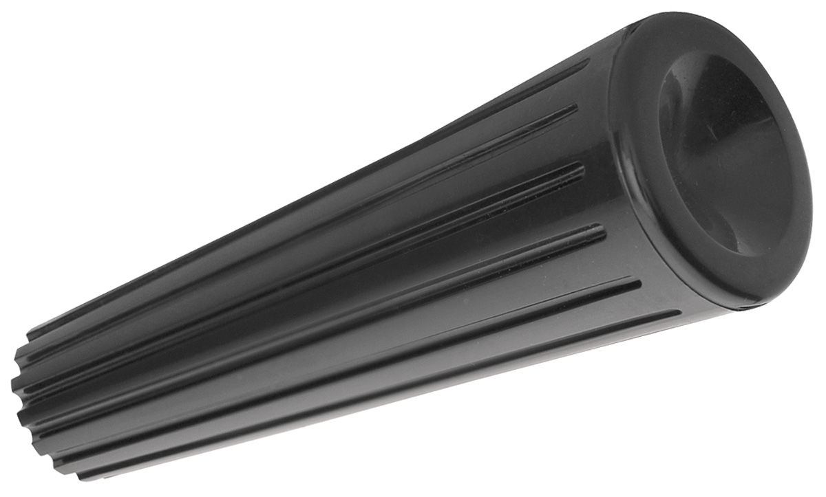 This is the black plastic knob that installs on the end of the gear selector lever. Has the correct recessed ribs. 3/4" tapers to 1/2" and is 2-1/2" long.