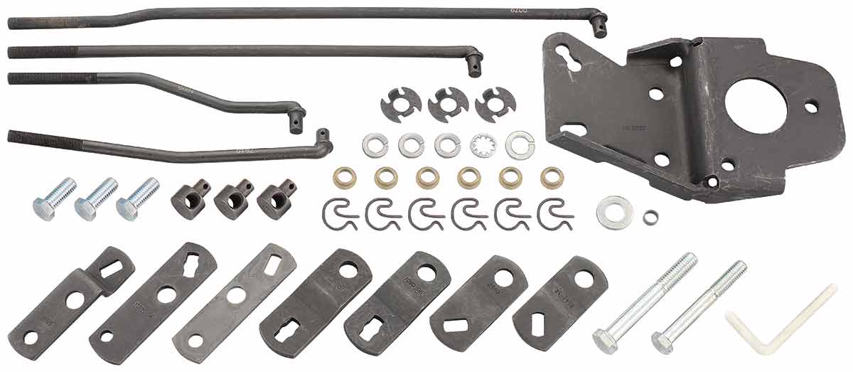 Based on the racing version of the legendary Hurst® Super Shifter™3, the Street Super™ shifter is designed as a universal competition shifter for many vehicle applications. The shifter mounts high on the transmission so stronger straight shift rods can be used giving more leverage and strength for shifting under high stress competitions. The result is the ultimate in performance, feel and dependability. This high quality rugged shifter includes a classic Hurst chrome flat blade stick and white shift knob. This Hurst installation kit is for the Street Super Shifter and is designed to be used on all 1964-1974 Muncie 4-speeds (451, 452, 453) transmissions, Borg Warner T-10 (410) transmissions, and Richmond/Borg Warner Super T-10 (454) transmissions. The Hurst Street Super Shifter incorporates all the great features of our Competition/Plus line of shifters, but mounts high on the transmission allowing the shift arms to be almost completely straight for added strength and leverage when racing. The kit includes the necessary mounting plate, 2 sets of shift arms, hardened steel shift rods, rod adjusting buttons, nylon bushings, spring clips and necessary hardware. The Street Super Shifter is a universal mount 4-speed shifter and will likely require modification to the floor pan of your vehicle.