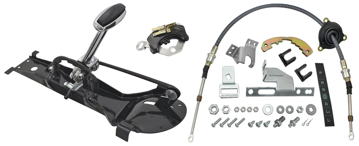 Kit Includes: Neutral Safety Switch From RESTOPARTS: New reproduction shifter From SHIFTWORKS: GM cable retainer clip Shifter cable Cable installation kit Gear Position Indicator lens (except 6L80E kits) Selector lever Gear selector detent plate