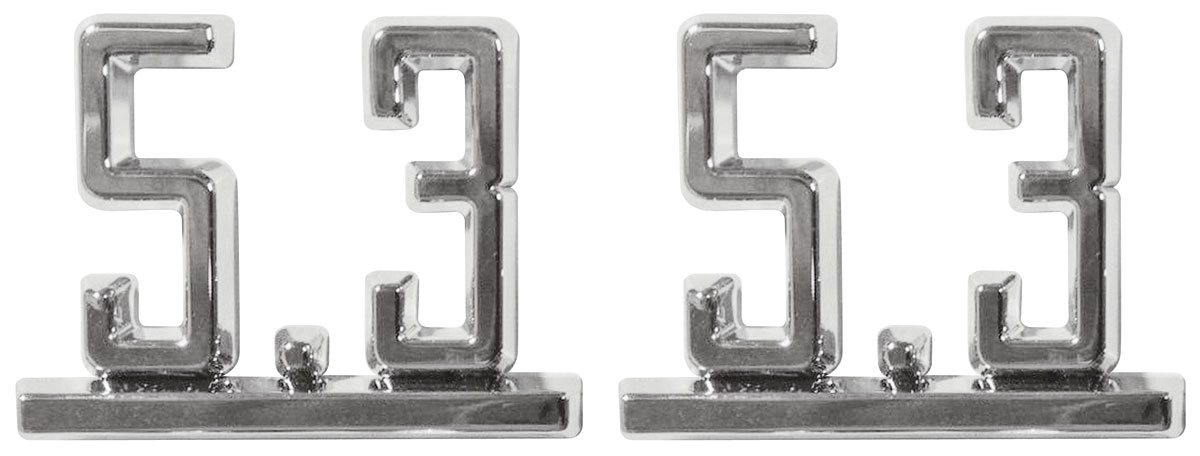 These authentic looking fender emblems are the perfect solution when converting to an LS-platform engine. The emblems are reminiscent of the originals installed by General Motors, but rather than cubic inches, these call out the liter displacement of the modern engines. Sold per pair, the emblems come with the necessary nuts for fastening and can be installed using the original holes.