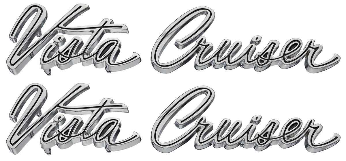Top-of-the-line fender script emblems are perfect for 1965-69 Vista Cruiser models. Each emblem is die-cast to factory specifications and professionally chrome-plated. Enamel accents are hand-painted for an authentic appearance and mounting studs and hardware provide a straightforward installation.