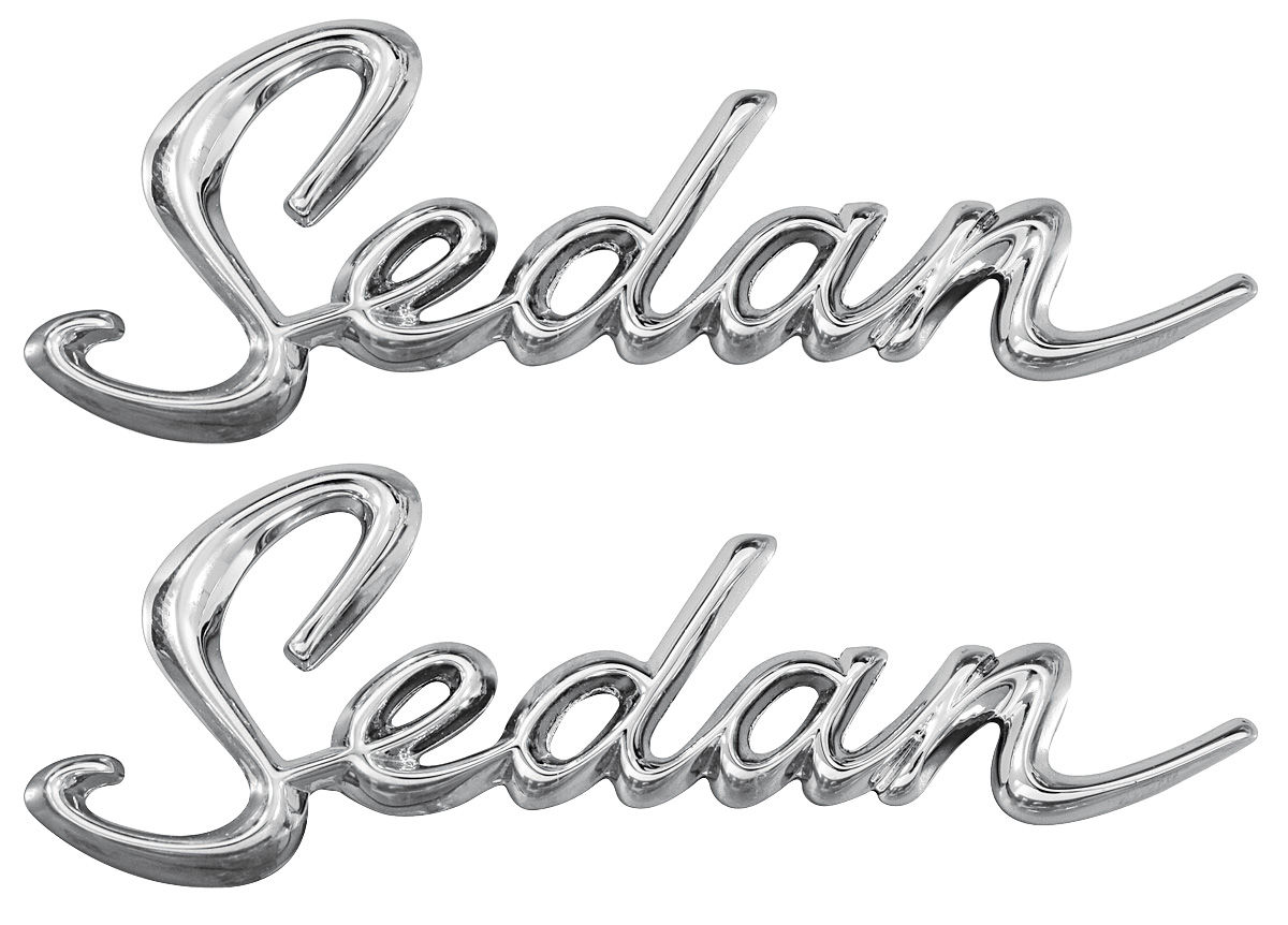 These reproduction “Sedan” emblems have been cast to OEM specifications for a perfect fit. Chrome-plated emblems feature correctly located mounting studs for installation.
