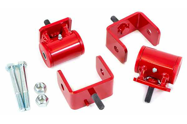 UMI Performance, Inc. introduces an engine mount set for 2004-2007 Cadillac CTS-V applications. Addressing the OEM Cadillac engine mount's tendency to fail and result in leaking damping fluid and increased engine movement, UMI's solution features fabricated steel and polyurethane bushing construction. This design resists engine rotation while providing moderate damping (with potential vibration increase compared to the factory hydraulic mount). The robust 1/4" steel double shear bracket and Energy Suspension polyurethane loaded sleeve are built to withstand the punishment delivered by the big Caddy. On-car testing reports minimal cabin noise (in most cases) and a sporty feel. Available in powder-coated red or black finish, this engine mount utilizes Grade 10.9 hardware and is a direct bolt-in replacement suitable for street or track use. Proudly crafted in Philipsburg, PA, USA.