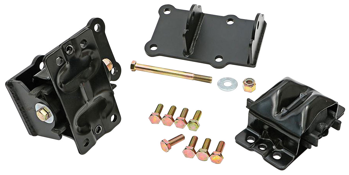 This engine mount swap kit contains the necessary components to transplant a late-model LS series engine into your G-body. Complete with welded steel engine adapter brackets, rubber frame pads, and all Grade-8 hardware, this kit makes installation a breeze. For additional mounting help, shims are available separately, and can be used where needed.