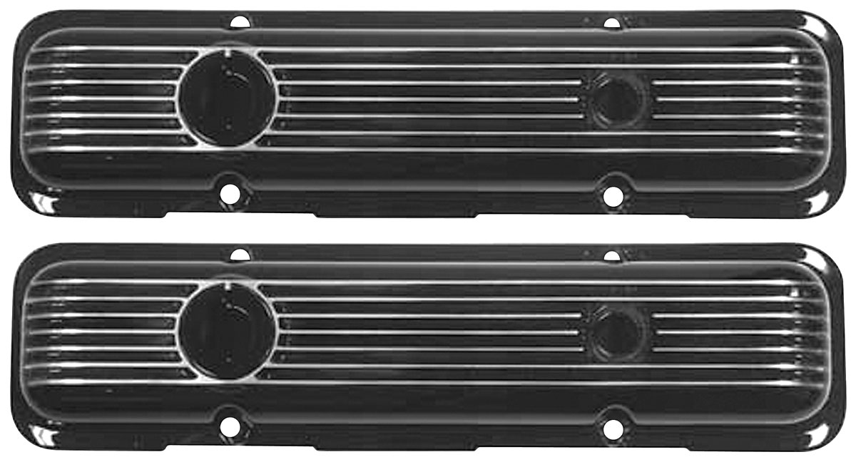 These reproduction valve covers are identical to original equipment used by General Motors on LT-1 350 small-block engines. Each cast aluminum cover features the proper mounting flange which is then shipped complete with a new pair of cork gaskets. The exterior fins and internal oil dripper tabs add to the authenticity of these covers. Oil filler and breather holes are pre-located and valve covers are also internally baffled adding to the factory detail. Covers are available in a polished or black powder coated finish to suit your needs.