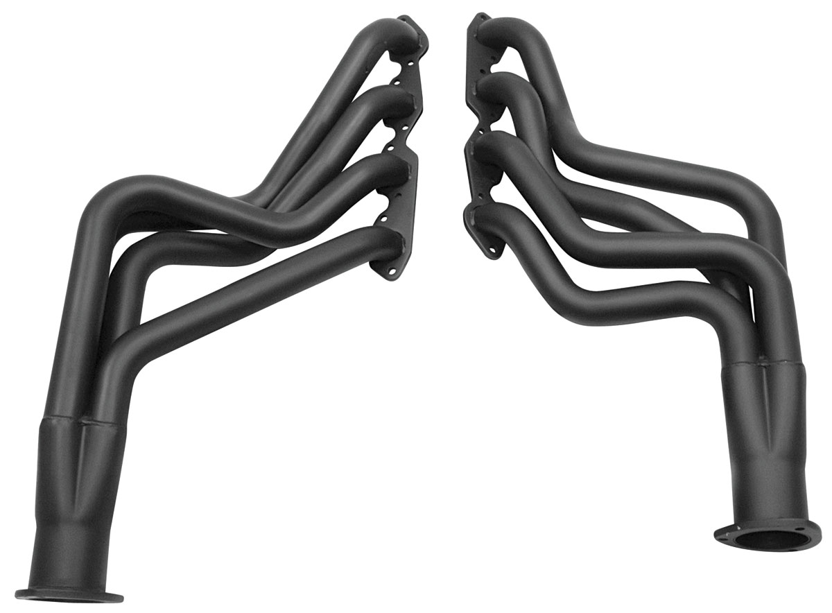 These full-length headers feature a 3/8" thick mounting flange and tubes made from 16-gauge steel to ensure long lasting performance. Available in steel or stainless steel material. Steel options include natural, black hi-temperature painted, or metallic-silver ceramic coated. Includes reducers, mounting hardware, and gaskets.