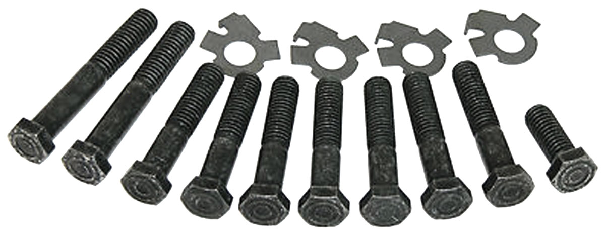 Make sure that your manifolds stay in place with these authentic reproduction exhaust manifold bolts offered by OPGI. Each kit is available for a variety of applications that includes 12 proper length bolts that have been finished in black-oxide along with 4 steel lock tab washers. Ensure there is no leaks and reduce the chances of warping the flange on your exhaust manifold.