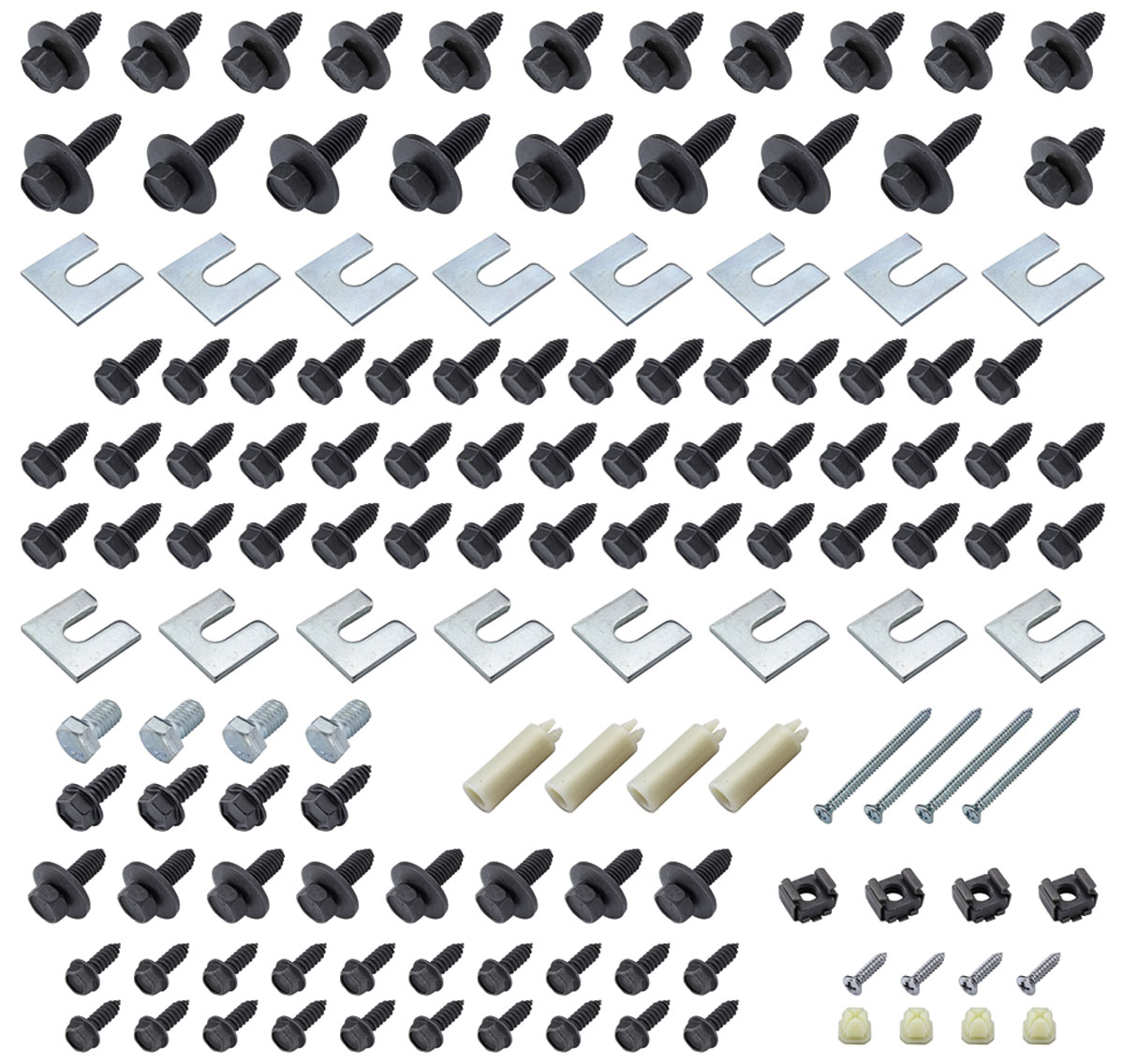 Our complete front end fastener kits are a lifesaver during assembly of your GTO. Each kit is packed with bolts for fenders, wheel wells, hood hinges, radiator support and much more. All of the bolts feature the correct factory dimensions and coatings for an authentic appearance when installed.