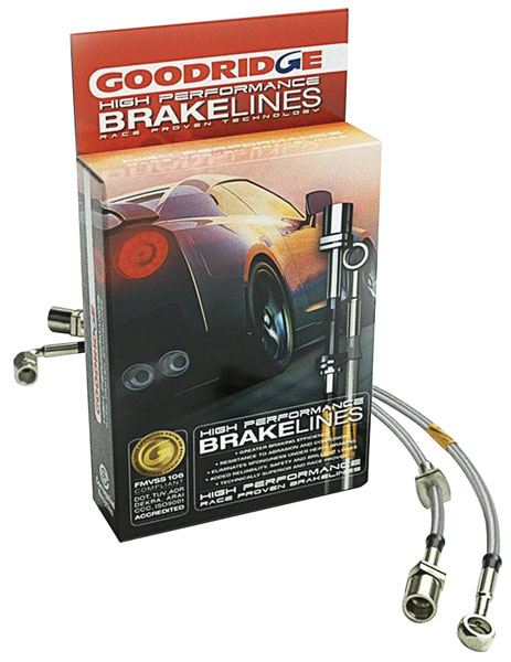 Goodridge stainless braided brake lines are the standard in professional motorsports where the ultimate in braking is required. The kits feature the finest quality hose, consisting of a PTFE inner with a stainless steel outerbraid. This eliminates the spongy feel under arduous conditions, giving much greater braking efficiency or clutch operation as well as providing superior resistance to abrasion and corrosion. All G-Stop lines go through a nine-point quality assurance testing including the materials tensile strength and 3000 psi pressure ratings. All G-Stops conform to FMVSS106-Federal Motor Vehicle Safety Standard- making them DOT compliant and TUV approved-the German standard that most international regulations follow. All necessary hardware included within kit.