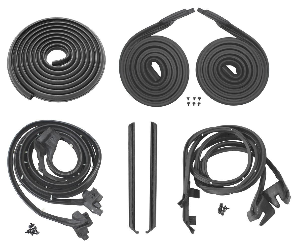 Our weatherstrip kits are designed to keep your vehicle sealed up tight. They're manufactured from high-quality materials and built to OEM exacting tolerances. Simple to install, these kits will retain your OEM look and provide a positive seal while eliminating rattle and wind noise. Keep the elements outside where they belong with a premium weatherstrip kit.