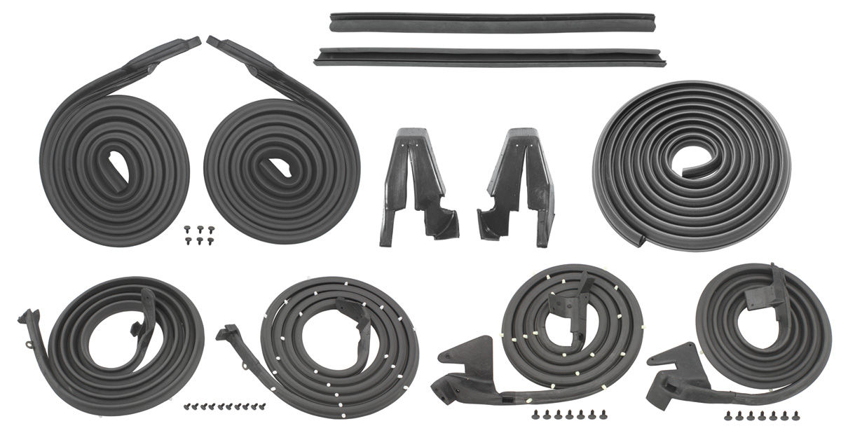 Our weatherstrip kits are designed to keep your vehicle sealed up tight. They're manufactured from high-quality materials and built to OEM exacting tolerances. Simple to install, these kits will retain your OEM look and provide a positive seal while eliminating rattle and wind noise. Keep the elements outside where they belong with a premium weatherstrip kit.