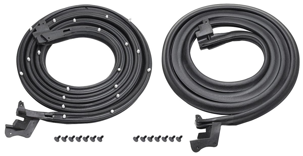 Our weatherstrip kits are designed to keep your vehicle sealed up tight. They're manufactured from high-quality materials and built to OEM exacting tolerances. Simple to install, these kits will retain your OEM look and provide a positive seal while eliminating rattle and wind noise. Keep the elements outside where they belong with a premium weatherstrip kit.