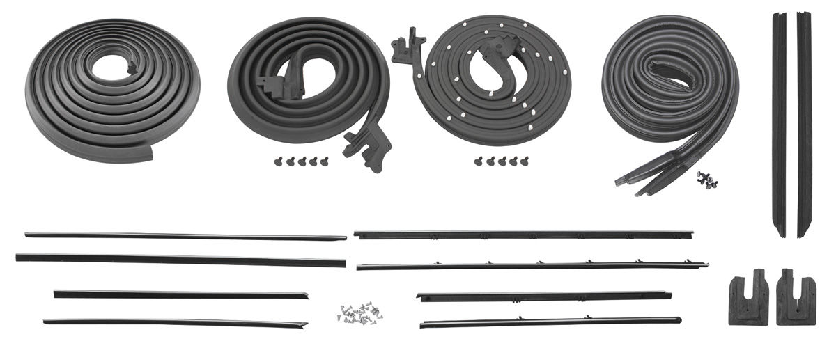 Our weatherstrip kits are designed to keep your vehicle sealed up tight. They're manufactured from high-quality materials and built to OEM exacting tolerances. Simple to install, these kits will retain your OEM look and provide a positive seal while eliminating rattle and wind noise. Keep the elements outside where they belong with a premium weatherstrip kit.