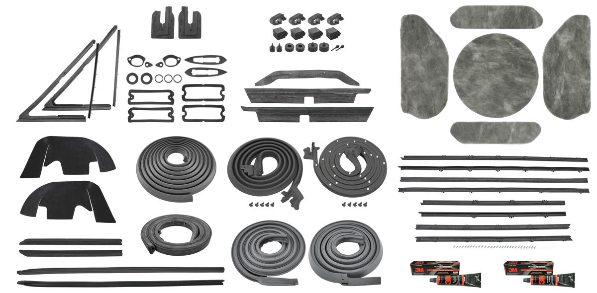 Our weatherstrip kits are designed to keep your vehicle sealed up tight. They're manufactured from high-quality materials and built to OEM exacting tolerances. Simple to install, these kits will retain your OEM look and provide a positive seal while eliminating rattle and wind noise. Keep the elements outside where they belong with a premium weatherstrip kit.