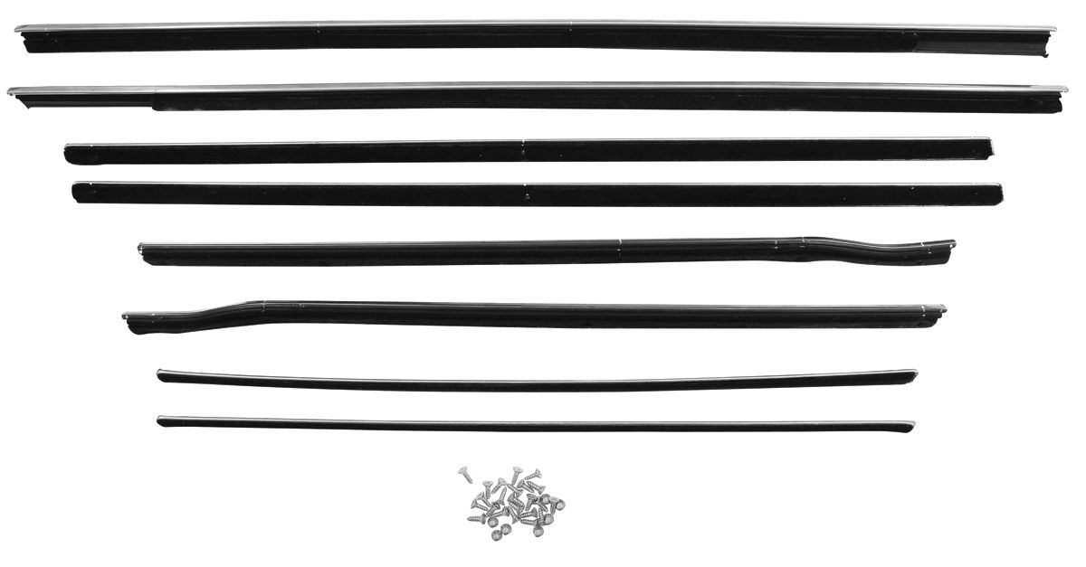 Our reproduction style window felts fit and function just like originals, but a few cosmetic differences such as a lower density felt and a rounded chrome bead, makes these an economical choice for your restoration. Correctly located mounting clips make installation a breeze.