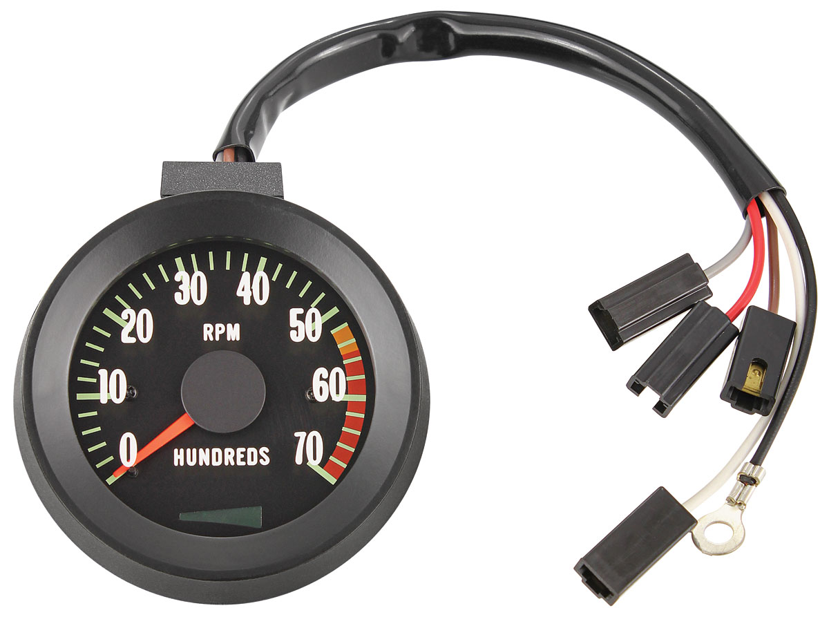 These precisely crafted tachometers are just like the originals. The 1966 version mounts at the bottom of the dash on the right side just like the factory and is known as the "knee-knocker" tach because you hit your knee when you shift your 4-speed. The 1967 version mounts to the front of the dash on the left by the speedometer and features the left turn signal on the face just as the original did. These are high-quality, professionally manufactured reproductions.
