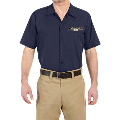 This button up Red Kap® 65/35 Polyester/Cotton blend shirt features a lined two-piece collar with permanent stays and mitered front pockets. This shirt has the "Chevrolet 1966" Script and Bowtie on the left chest and are fade resistant.