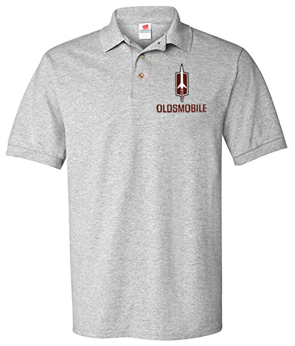 This ComfortSoft preshrunk cotton polo has a tag-free neck label for added comfort, a double needle bottom hem for durability and three wood-tone buttons. Features the Oldsmobile and Rocket logo embroidered on left chest.