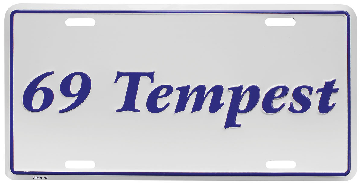 These quality license plates are white with dark blue lettering. Plate comes inscribed with "Tempest" and the year of your choice—1965 through 1969.