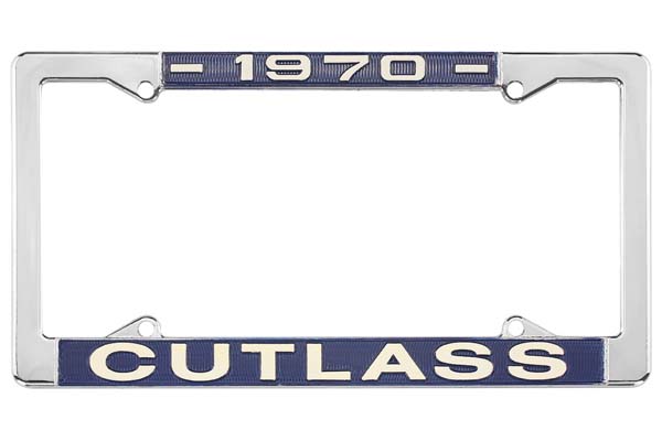 These die-cast, triple chrome-plated frames have a "baked-on enamel" blue background with cast raised lettering. The quality is superb!