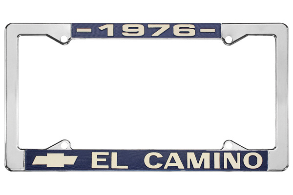These die-cast, triple chrome-plated frames have a "baked-on enamel" and a blue background with cast raised lettering. The quality is superb!