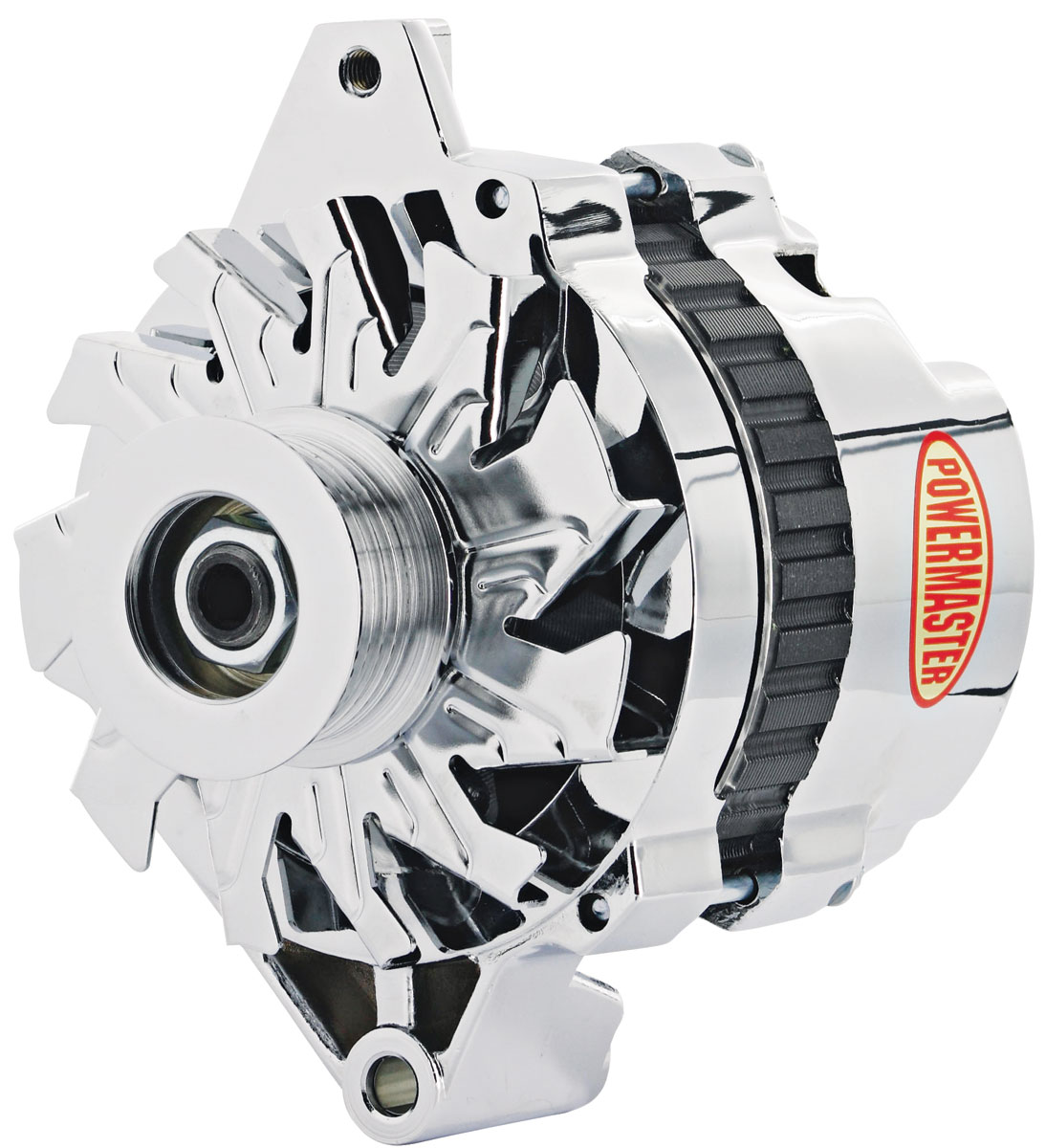 Powermaster CS130 Style Alternators are avaliable in 1V or 6-rib Performance 105amp/140amp or Performance 105amp/140amp XS VOLT™ featuring user adjustable voltage set points between 13.5-18.5 volts. Great for 12v-14v, and 16v systems, the set points are adjustable via adjusting screw on the back of the alternator housing. These alternators have an excellent output at idle with better cooling internal & external fans. One unit for 1 wire or OE hookup, highly efficient small case alternator that's an excellent replacement for 10/12si. These alternators Feature a 6.61" Straight Mount with a 5.12" housing. 105AMP break down: 85A at Idle, 95A at Cruise and 105A at Top end. 140AMP break down: 95A at Idle, 125A at Cruise and 140A at Top end.