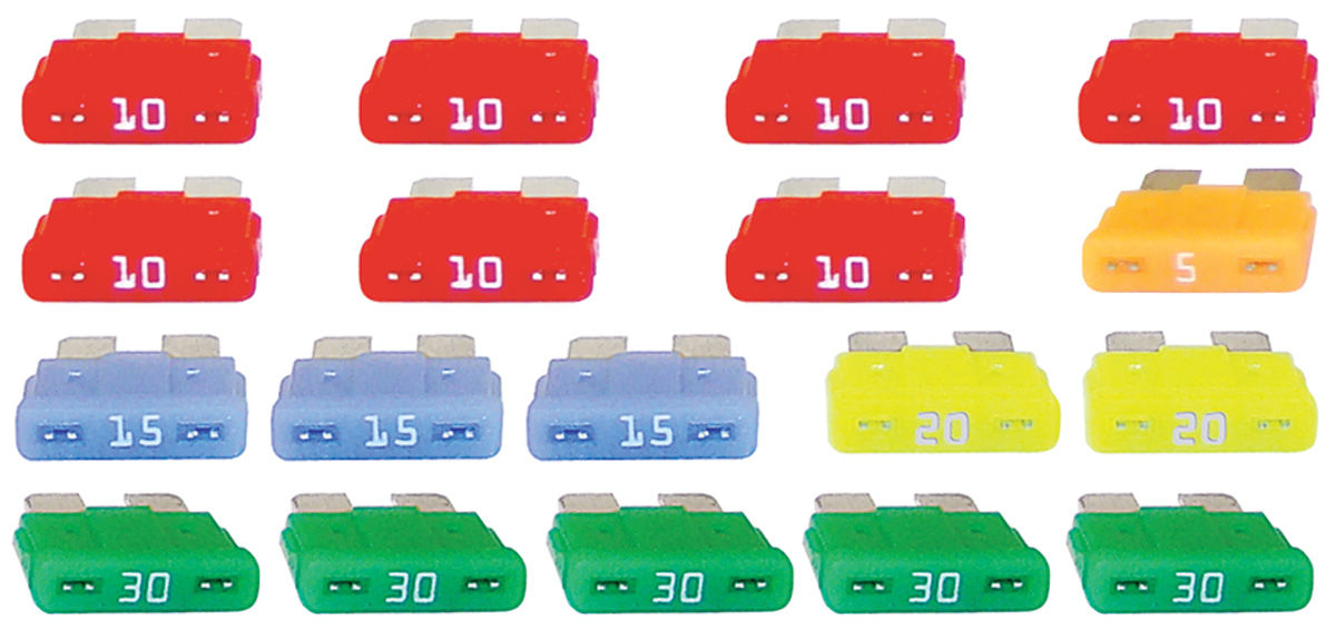 Check your ATO and ATC type fuses the easy way with these intelligent fuses from American Autowire. The fuses work exactly as conventional units and still maintain testability on the load and output sides, but they have the unique feature of an LED light that indicates a blown fuse. Intelligent fuses are sold in complete sets only and are available for a variety of wiring kits.