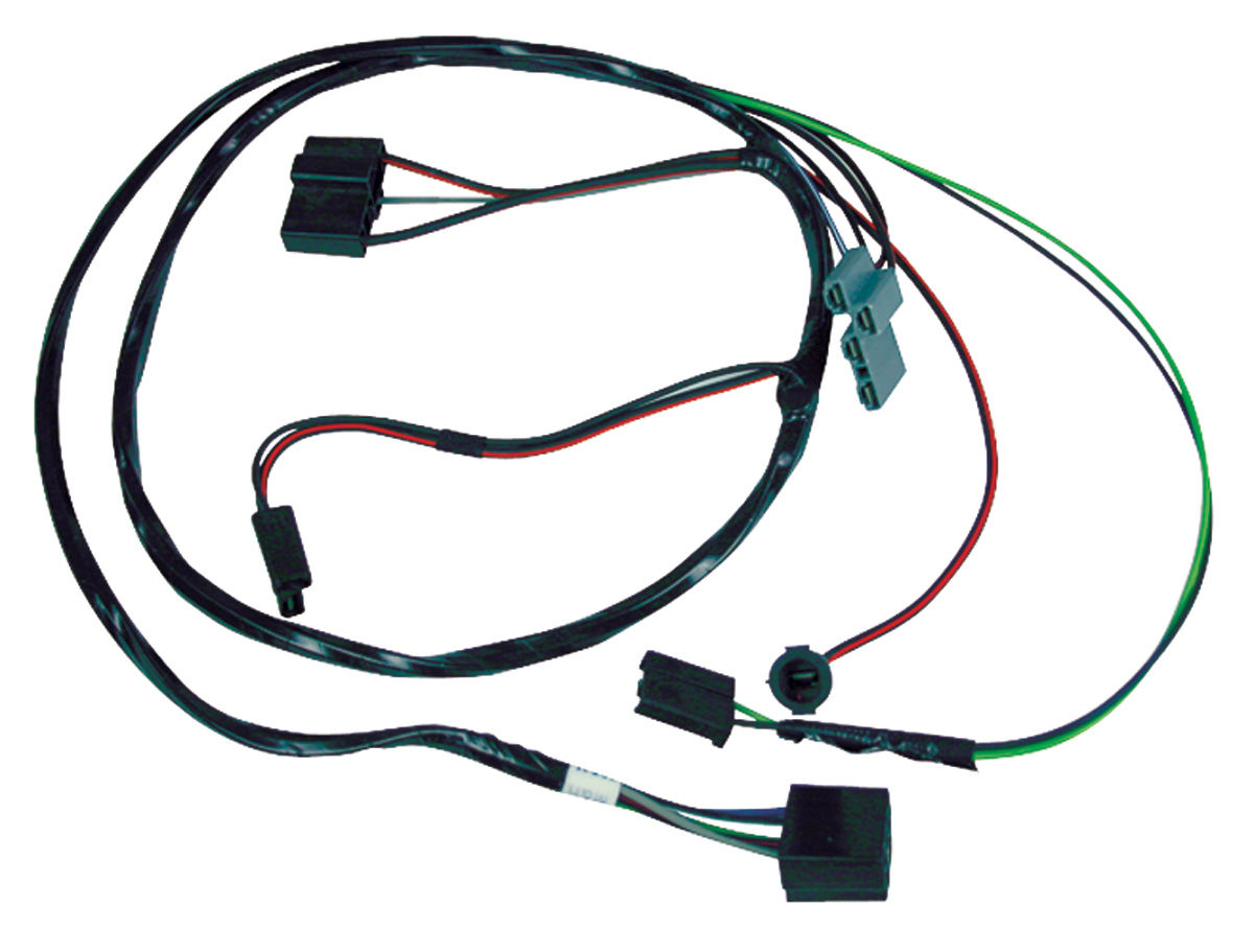 This harness provides wiring for air conditioning relays and the compressor in the engine compartment. Includes heater wiring unless specified.