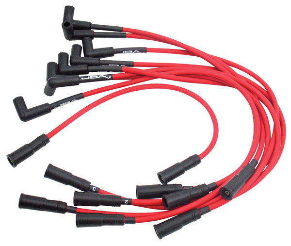 JBA PowerCables™ ignition wires are less than half the resistance of most factory wires, which frees spark energy and increases performance! Get as much as 5+ hp gain with JBA PowerCables™ as tested by Car Craft Magazine. They feature 100% silicone jackets and unique boot ends designed for maximum clearance and long life for severe duty applications. These heavy duty ignition wires come standard with wire-wound mag conductors for superior Electro Magnetic Interference suppression (EMI). Why put old ignition wires on your new JBA equipped engine? Add JBA PowerCables for the best performance and reliability. Extra thick diameters for improved under hood appearance. 100% silicone jackets that are resistant to heat and abrasion. Ultra low resistance design for improved performance through the ignition system. Wire wound mag conductors for superior Electro Magnetic Interference suppression. Custom tailored lengths w/ cylinder I.D. labels for an easy installation!