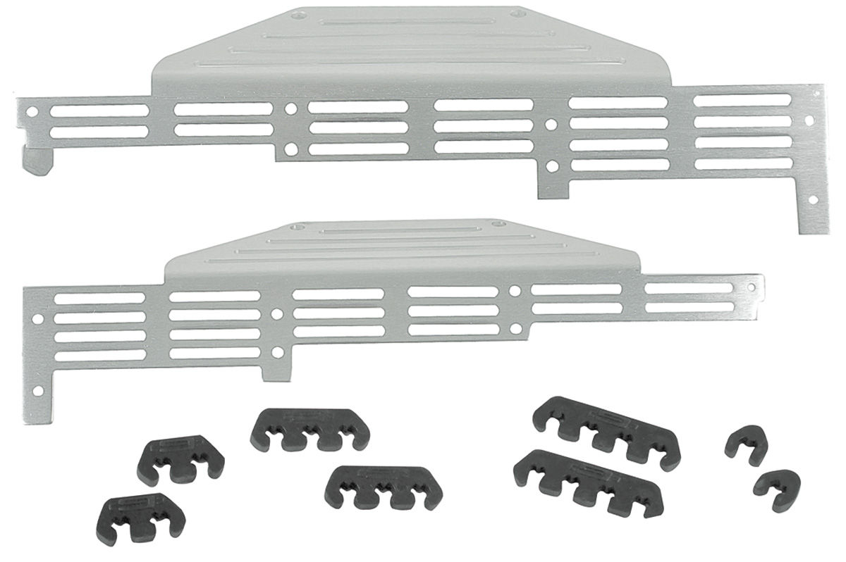 This universal spark plug wire divider set features an aluminum bracket with adjustable mounts to provide a perfect fit for a variety of applications.