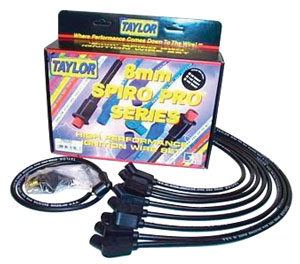 Taylor Spiro Pro 8 mm spark plug wires have a high-conductivity resistor conductor that’s spiral-wound with a stainless steel wire for more power through the wire and to the plug. They have ten times less resistance than standard wires, which helps eliminate electronic interference to radios, ignitions and computer-controlled devices. Spiro Pro wires use two layers of 100% silicone on the outside with a temperature rating of 600 degrees without additional sleeving—the highest on the market. The spark plug boots are low profile and have double spring lock spark plug terminals. Use Spiro Pro spark plug wires for performance at a reasonable price.