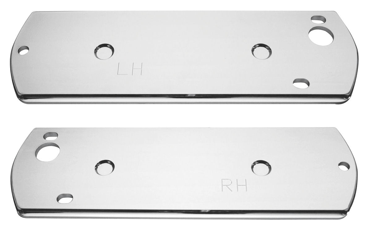 These armrest base backing plates feature a beautiful, mirror-like chrome-plating and have factory-correct mounting holes. Correct for models that use 18" plates, these are sure to improve the appearance of your interior.