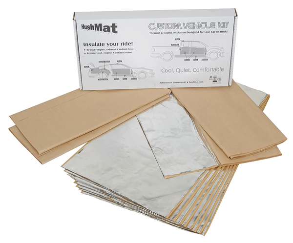 When driving your vehicle do you feel the heat coming through the firewall, floor and tunnel? Do you hear road noise and vibration that prevents you from having a conversation inside your vehicle? Then reduce that engine, exhaust drone, road noise, vibration and reduce the heat that comes from the engine, headers, exhaust or catalytic converters with the light weight Hushmat Ultra! Hushmat's proprietary USA manufactured visco-elastic chemistry dissipates this heat insulating your interior causing less load on your A/C system. Hushmat Ultra is available from OPGI in several different kits and sizes to cover certain sections of your vehicle or the entire vehicle. Custom sets available in silver only
